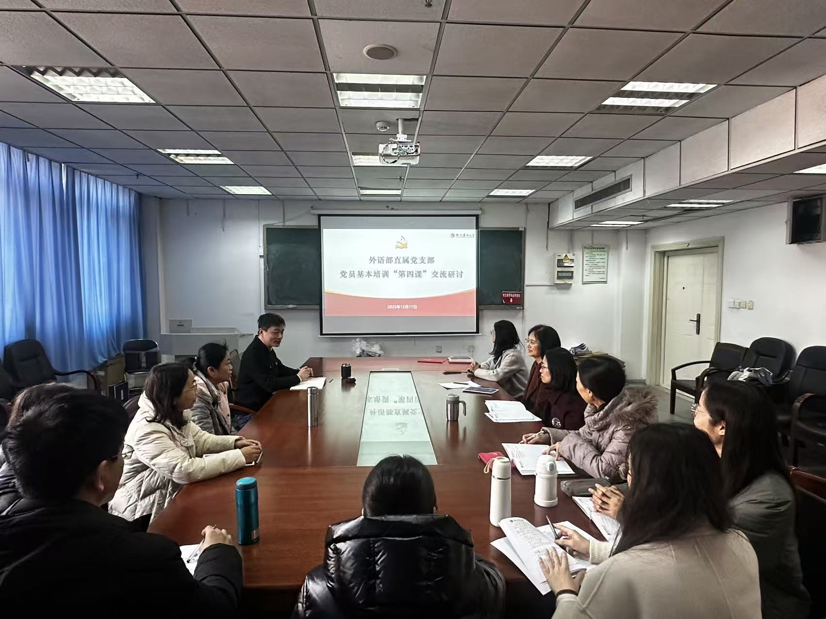 为深入学习贯彻习近平新时代中国特色社会主义思想和党的二十届四中全会精神,增强师生党员的党性修养与担当意识,12月10日下午,外语部直属党支部组织开展2025年度师生党员集中培训第四课,支部全体党员参加学习。