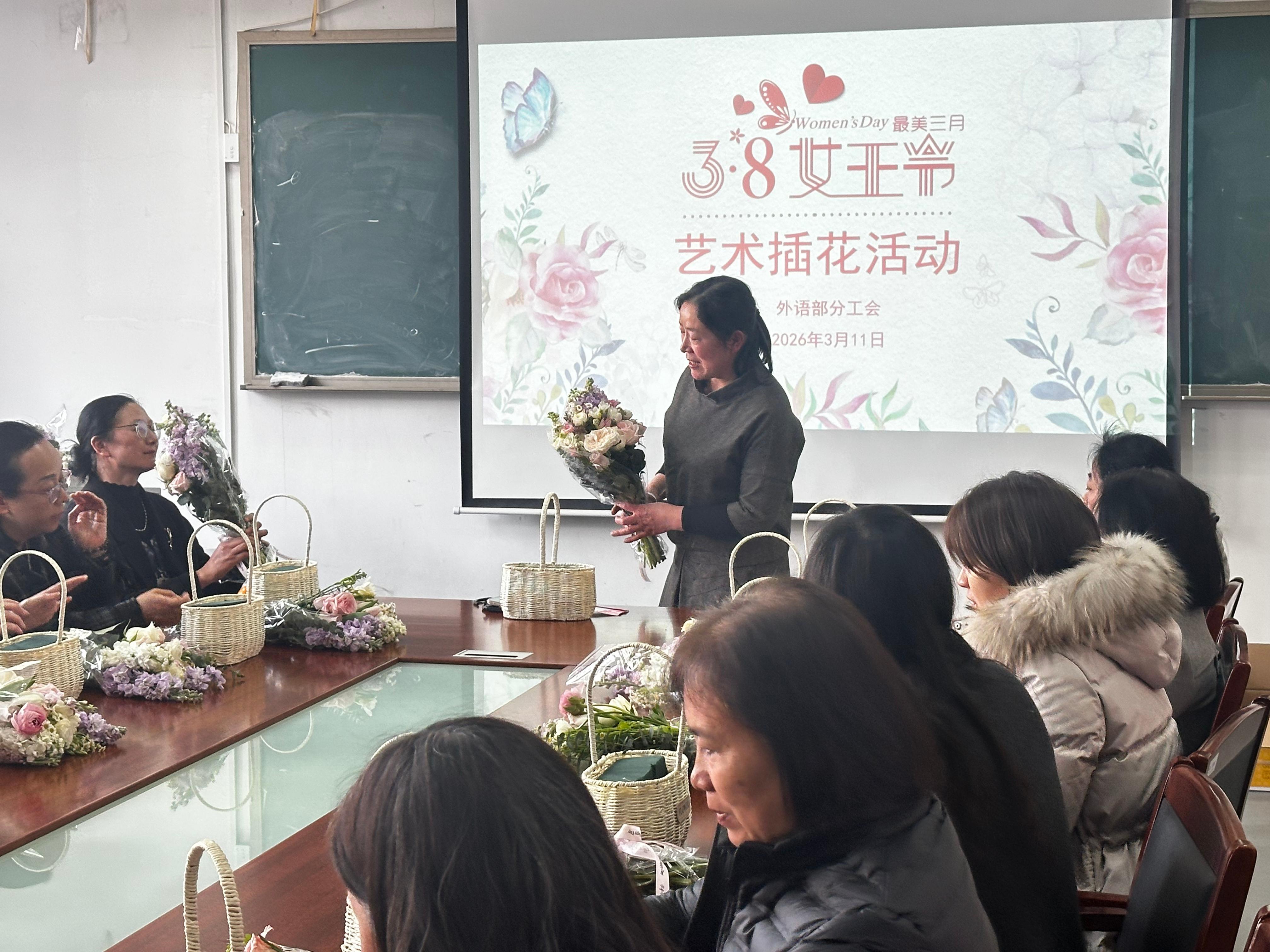 为庆祝“三八”国际妇女节,丰富女教职工精神文化生活,外语部分工会于3月11日组织开展了“指尖绽放,悦享芳华”艺术插花主题活动。